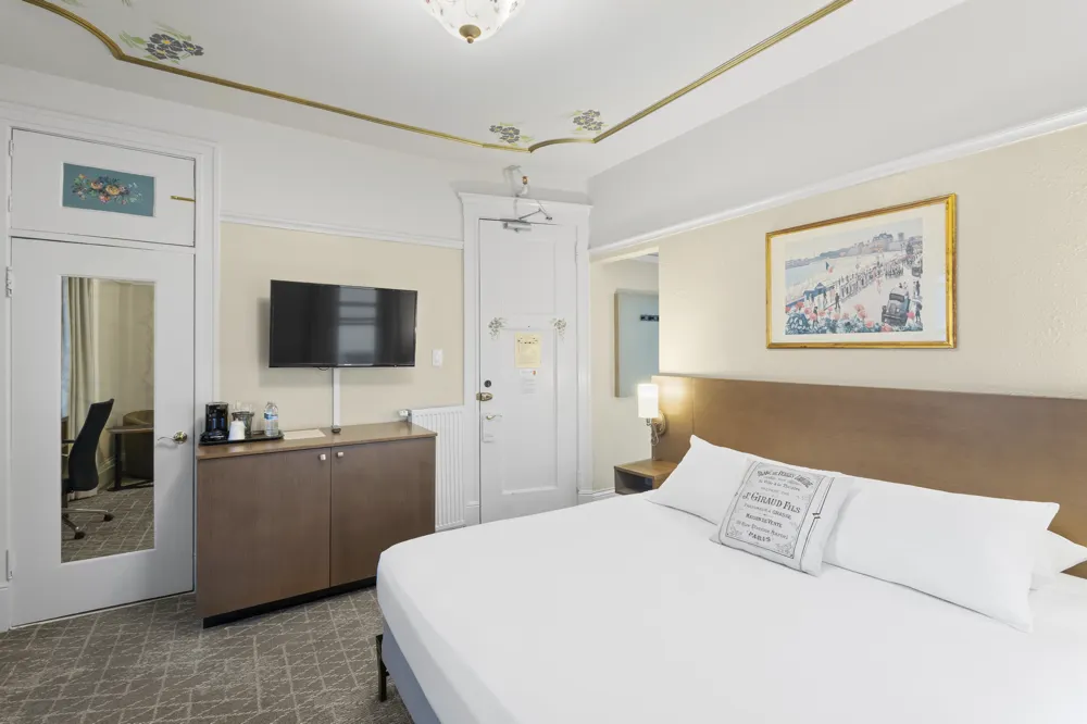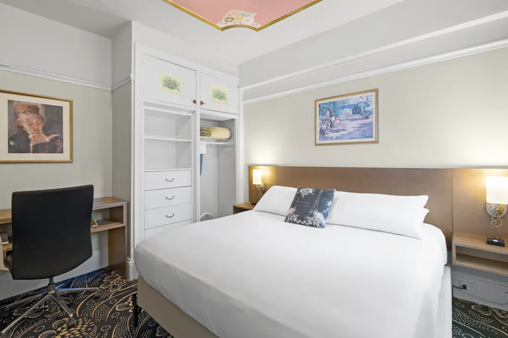 Cornell Hotel de France strives to deliver the exact experience you would get at a hotel on the Rive gauche in Paris. Built by architect A.W. Pattiani in 1910, the building was registered at the National Register of Historic Places as part of the “Lower Nob Hill Apartment Hotel District." Over the years, it has seen extensive renovations to provide greater accessibility and modern comfort while keeping intact its signature romantic Victorian architecture.